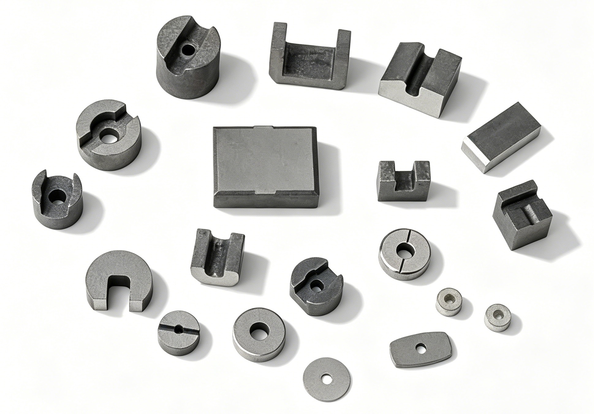 Raw material, grade, shape complexity, tolerance, coating, magnetization type, and order volume