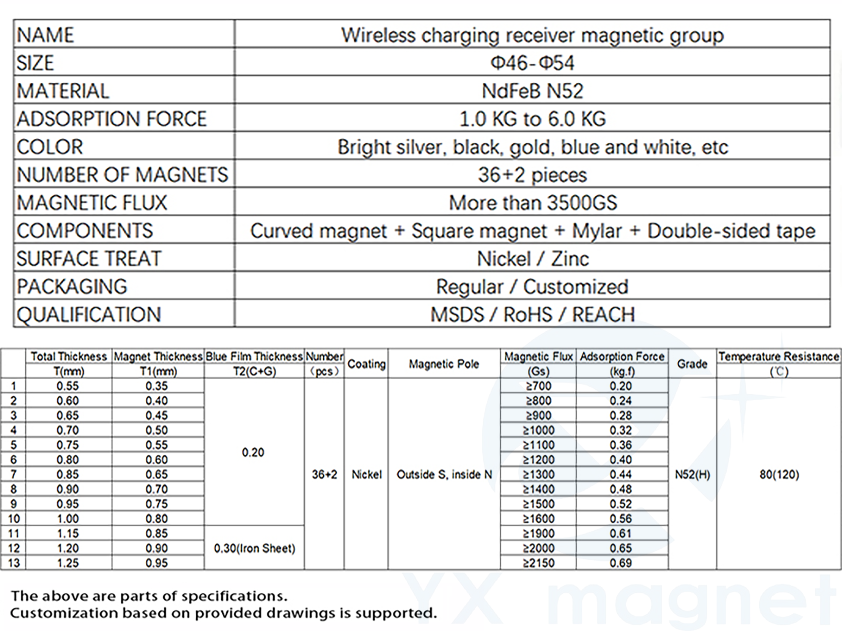 Customizable magnetic ring size, suction force and array layout on demand, widely used in wireless chargers, car mounts, phone cases and other magnetic accessories.