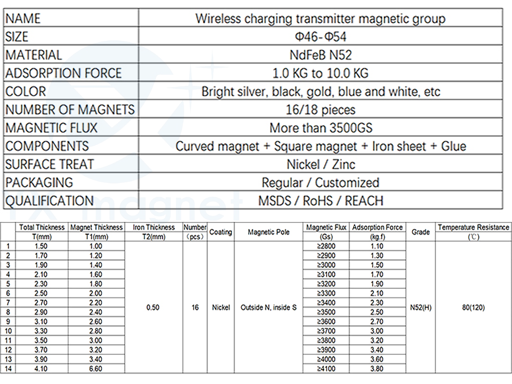 Built-in high-performance magnetic array for universal magnetic wireless charging ecosystem.Precise alignment, strong holding force,stable wireless charging, widely used in chargers, mounts, cases and accessories.